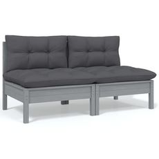 Canape 2 places de jardin et coussins Gris Bois de pin solide