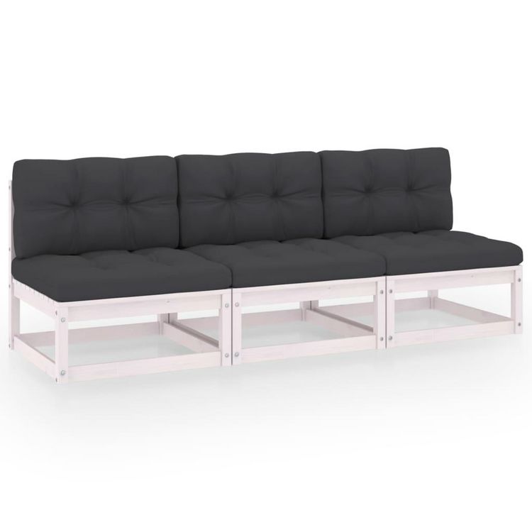 Canape 3 places avec coussins Bois de pin massif