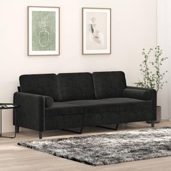 Canape 3 places avec oreillers decoratifs noir 180 cm velours