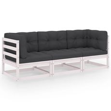 Canape 3 places de jardin avec coussins Bois de pin massif