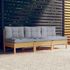 Canape 3 places de jardin et coussins gris Bois de pin solide