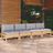 Canape 4 places de jardin et coussins gris Bois de pin solide