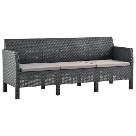 Canape a 3 places de jardin avec coussins Anthracite PP Rotin