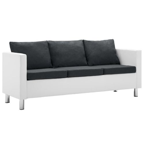 Canape a 3 places Similicuir Blanc et gris fonce