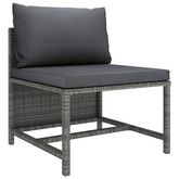 Grace a la resine tressee resistante aux intemperies, le siege central est leger, resistant a l'usure et adapte a une utilisation quotidienne. La chaise de milieu est dotee d'un cadre robuste en acier enduit de poudre, qui est tres durable. Ce siege central de jardin est specialement conçu pour servir comme une partie de l'ensemble de salon et il peut egalement etre utilise comme un canape simple. Vous pouvez le combiner avec d'autres segments modulaires comme table basse, repose-pied et canape central pour creer vos propres configurations de salon de jardin ! Les coussins rembourres et amovibles sont tres confortables.