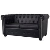 Canape Chesterfield a 2 places cuir synthetique noir