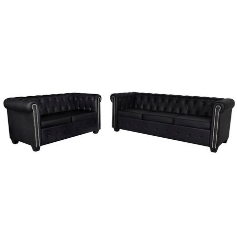 Cet ensemble de canapes a 2 et 3 places Chesterfield est la combinaison parfaite de confort et d'elegance. Il occupe peu d'espace et est adequat a tout decor de maison ou de bureau. Longue duree de vie et entretien facile : le similicuir est un materiau tres durable qui resiste aux taches, ce qui le