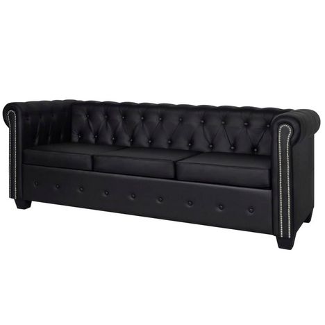 Canape Chesterfield a 3 places cuir synthetique noir