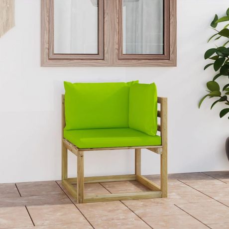 Canape d'angle de jardin avec coussins Bois impregne de vert