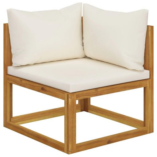 Fabrique en bois d'acacia massif, le siege d'angle est solide, robuste et durable. Sa finition a l'huile rend le canape adapte a une utilisation en plein air. Le siege rembourre et les coussins de dossier offrent le confort supreme pendant votre experience d'assise.