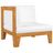 Le canapé d'angle sectionnel VIDAXL allie esthétique contemporaine et polyvalence d'aménagement. Son cadre en bois d'acacia massif à la finition huilée s'harmonise avec des coussins blanc crème en polyester résistant, offrant une solution modulable pour espaces extérieurs.