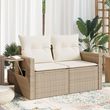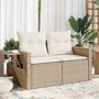 Canape de jardin avec coussins 2 places beige resine tressee