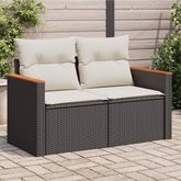 Canape de jardin avec coussins 2 places noir resine tressee
