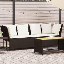 Canape de jardin avec coussins marron resine tressee