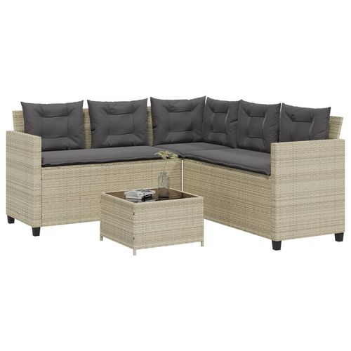 Canape de jardin et table et coussins en forme de L gris clair