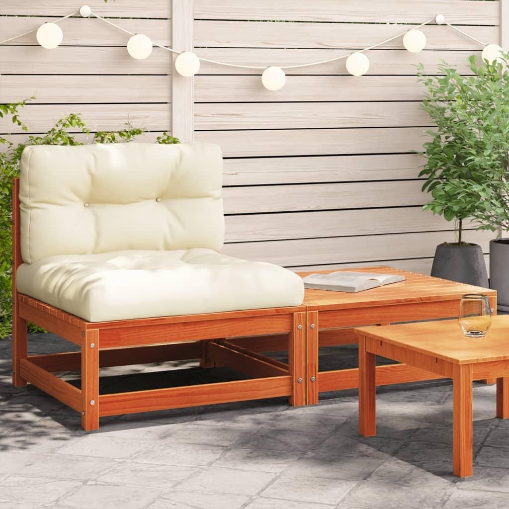 Ce canape de jardin en bois avec coussins et repose-pieds sera un excellent supplement a votre jardin, terrasse ou patio pour discuter en famille et entre amis ou tout simplement profiter du beau temps. Bois de pin massif : le bois de pin massif est un materiau naturel magnifique. Le bois de pin a u