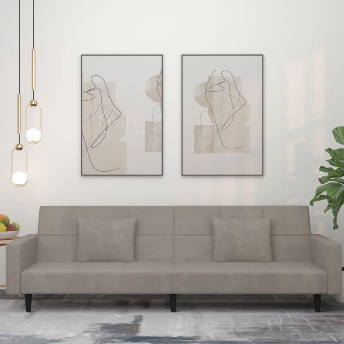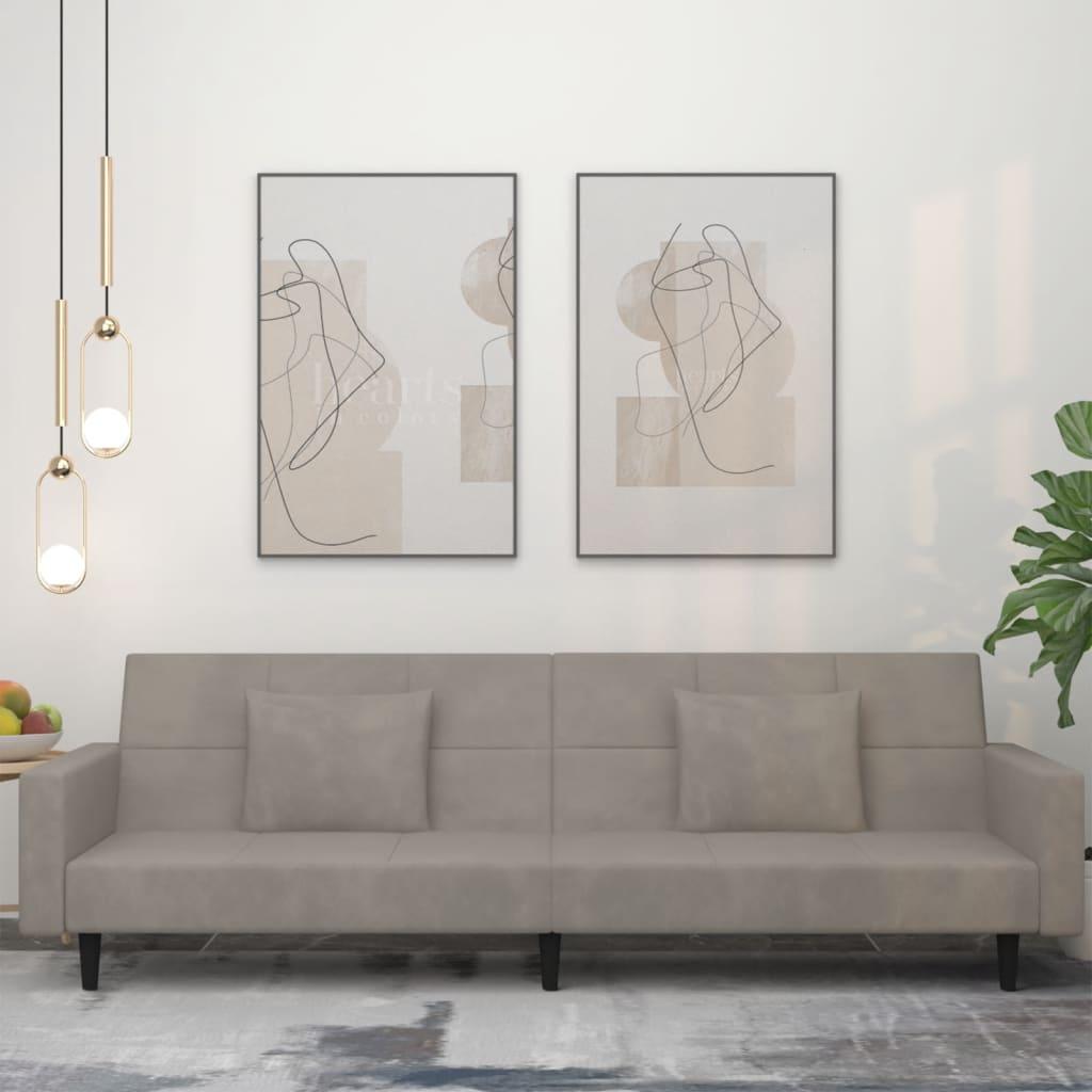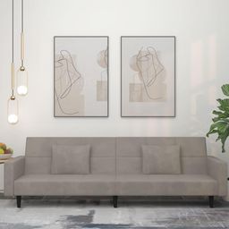 Canape-lit a 2 places avec deux oreillers Gris clair Velours