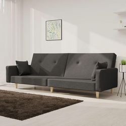 Canape-lit a 2 places avec deux oreillers Gris fonce Tissu