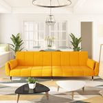 Canape-lit a 2 places avec deux oreillers Jaune Velours