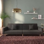 Canape-lit a 2 places avec deux oreillers noir tissu