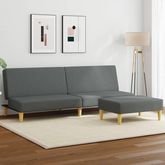 Canape-lit a 2 places avec oreillers et repose-pied gris fonce