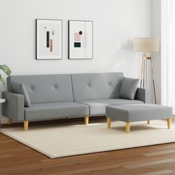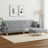 Canape-lit a 2 places avec repose-pied gris clair tissu