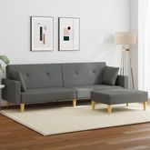 Canape-lit a 2 places avec repose-pied gris fonce tissu