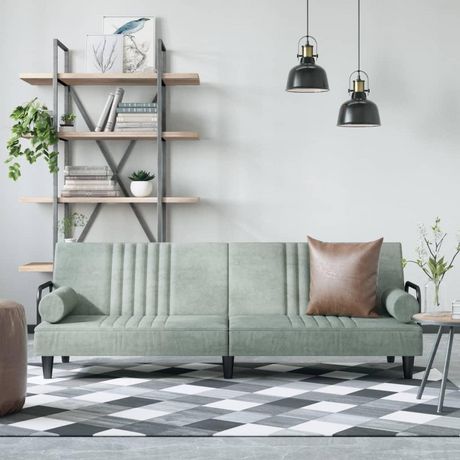 Canape-lit avec accoudoirs gris clair velours