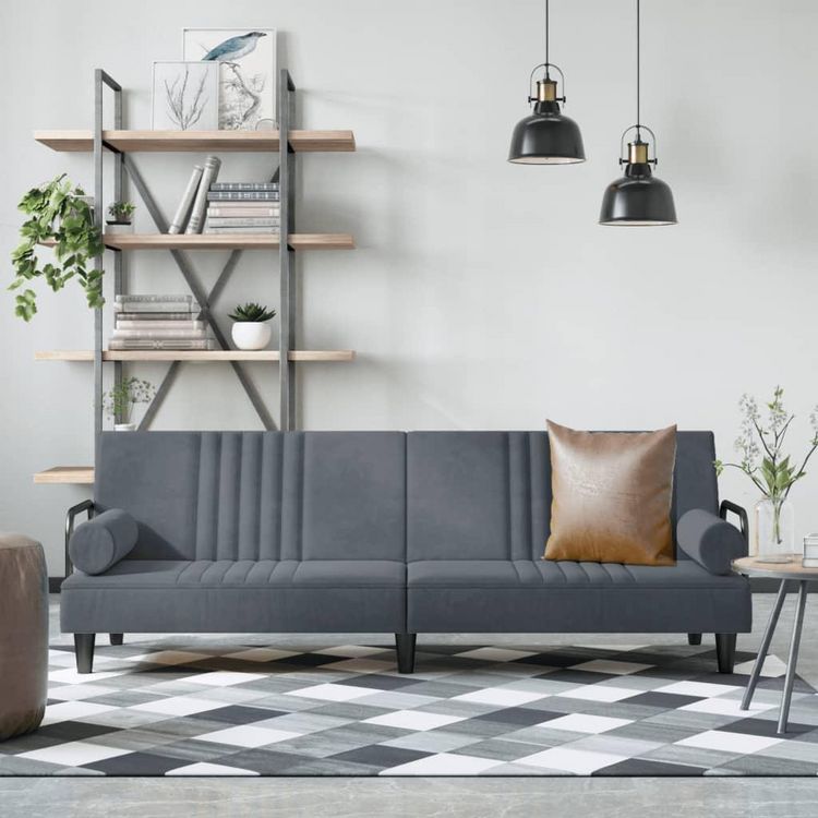 Canape-lit avec accoudoirs gris fonce velours