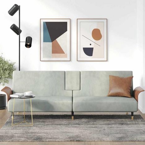 Ce canapé-lit gris clair VIDAXL allie esthétique moderne et praticité avec son revêtement velours doux et son porte-gobelets intégré. Son coloris neutre s'adapte à tous les intérieurs, tandis que sa structure compacte (224 x 89 cm) optimise l'espace sans sacrifier le confort.