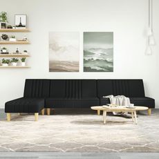Canape-lit en forme de L noir 255x140x70 cm tissu