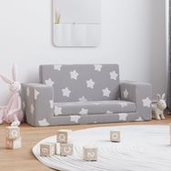 Canape-lit enfant 2 places gris clair etoiles peluche douce