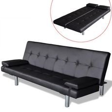 Canape-lit reglable avec deux oreillers Similicuir Noir