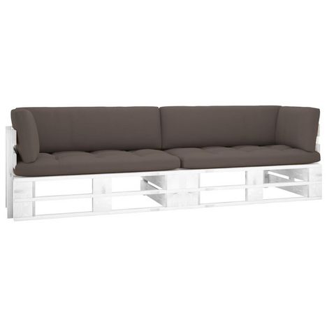 Canape palette 2 places avec coussins Pin impregne de blanc