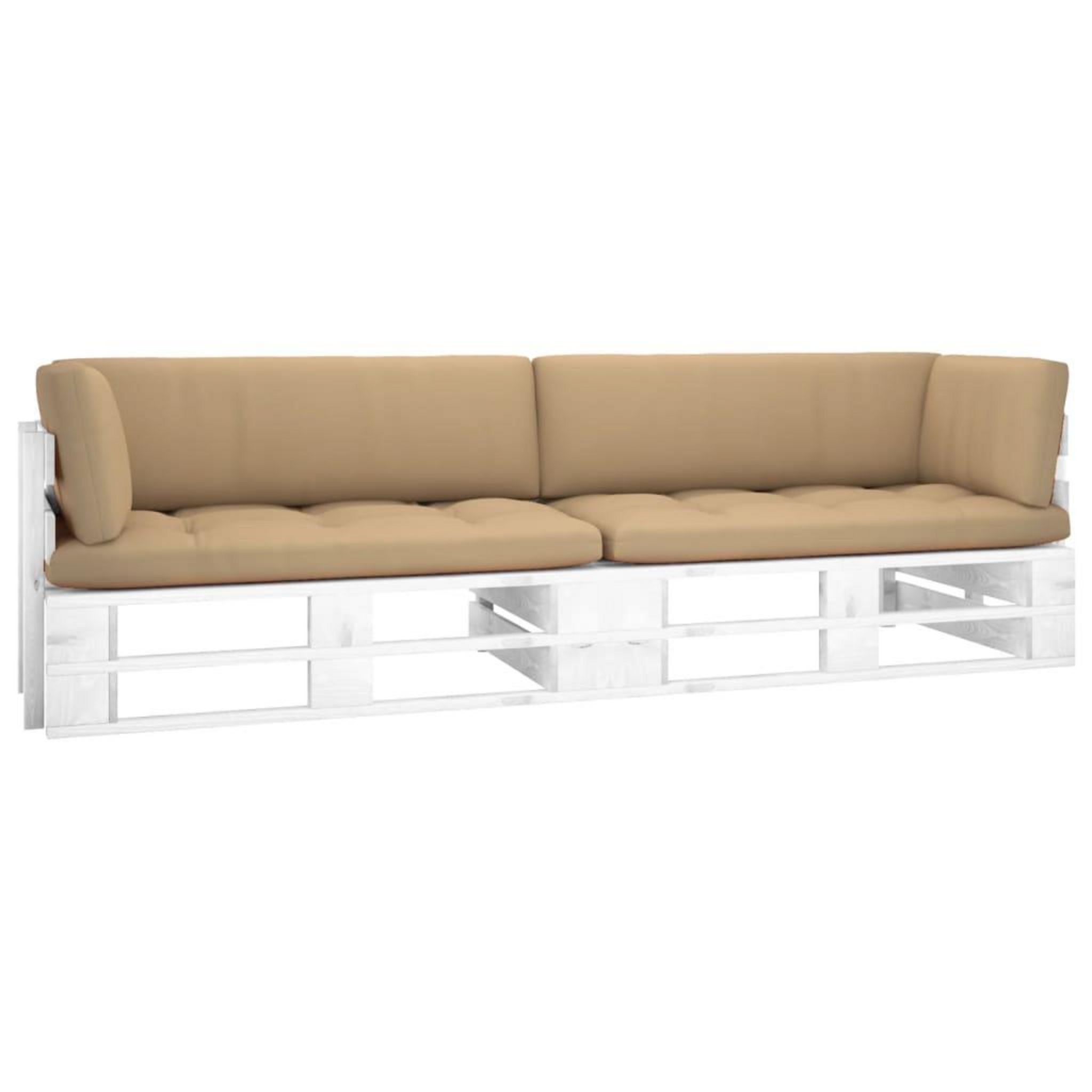 Canape palette 2 places avec coussins Pin impregne de blanc