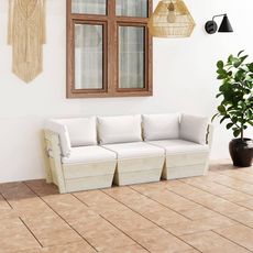 Canape palette a 3 places de jardin avec coussins Bois d'epicea