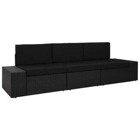 Canape sectionnel 3 places Resine tressee Noir