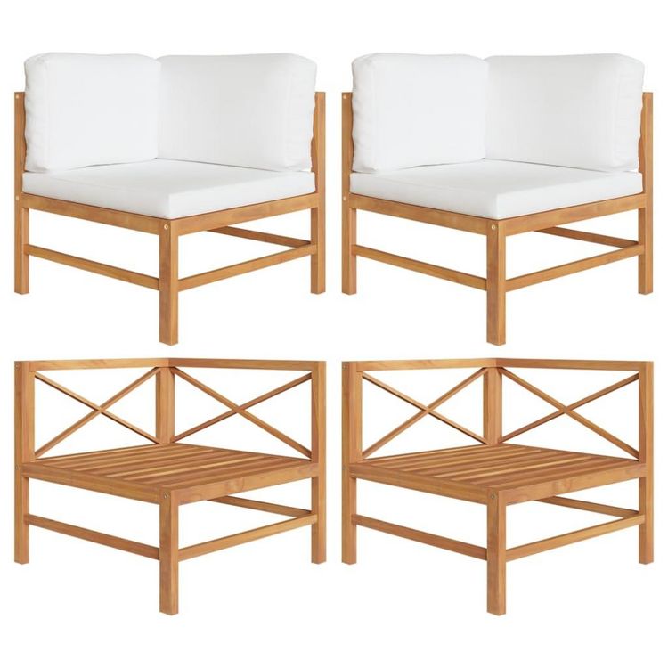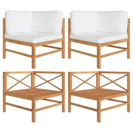 Canapes d'angle 2 pcs avec coussins creme Bois de teck solide