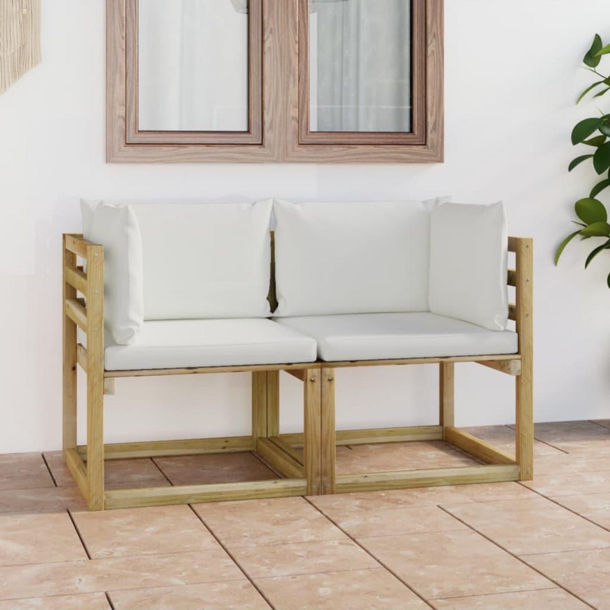 Canapes d'angle de jardin 2pcs et coussins Pin impregne de vert