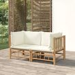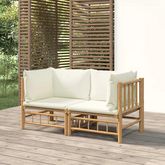 Canapes d'angle de jardin avec coussins blanc creme 2pcs bambou
