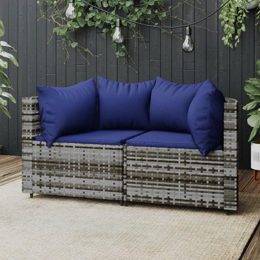 Canapes d'angle de jardin et coussins 2 pcs gris resine tressee