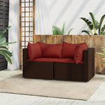 Canapes d'angle de jardin et coussins2pcs marron resine tressee