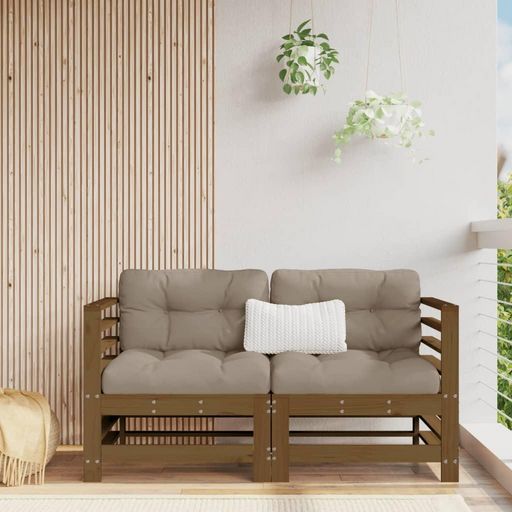 Canapes d'angle et coussins 2pcs marron miel bois de pin massif