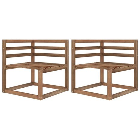 Canapes d'angle palette de jardin 2 pcs Marron Pin impregne