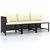 Canapes de jardin 3 pcs avec coussins Noir Resine tressee