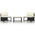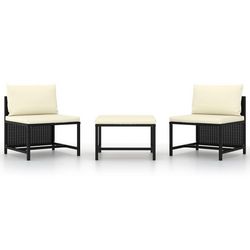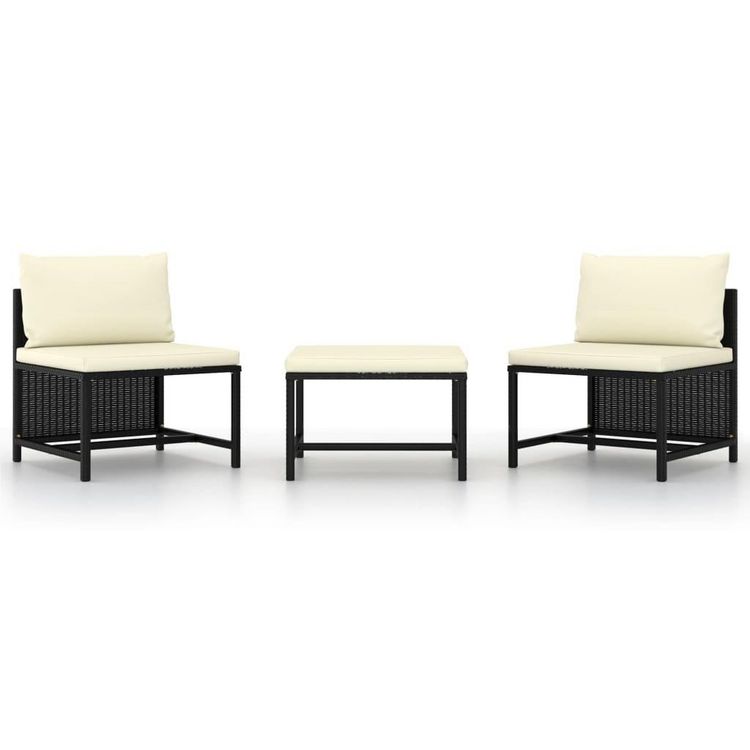 Canapes de jardin 3 pcs avec coussins Noir Resine tressee