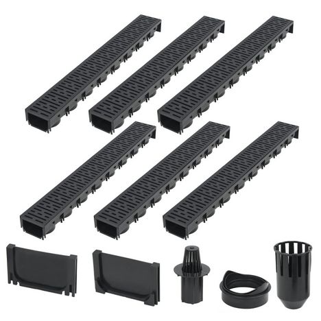 Cet ensemble complet se compose de 6 caniveaux de drainage avec grilles en plastique, 1 systeme de filtration, 1 raccord de sortie inferieur et 2 embouts. Il constitue une solution parfaite pour la collecte et l'elimination de l'exces d'eau dans les allees, les patios et autres espaces exterieurs.