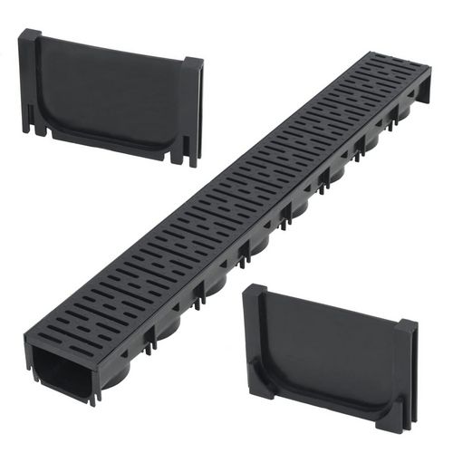 Cet ensemble complet se compose d'un caniveau de drainage avec grille en plastique et de 2 bouchons d'extremite. Il constitue une solution parfaite pour la collecte et l'elimination de l'exces d'eau dans les allees, les patios et autres espaces exterieurs.