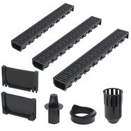 Cet ensemble complet se compose de 3 caniveaux de drainage avec grilles en plastique, 1 systeme de filtration, 1 raccord de sortie inferieur et 2 embouts. Il constitue une solution parfaite pour la collecte et l'elimination de l'exces d'eau dans les allees, les patios et autres espaces exterieurs.