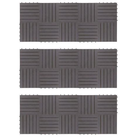 En savoir +Cet ensemble de 30 tuiles de terrasse en bois dur est parfait pour orner les surfaces ou les allees dans votre jardin, sur votre terrasse ou balcon, ou dans toute autre piece. Le motif n'est pas seulement decoratif, mais ajoute une qualite antiderapante.